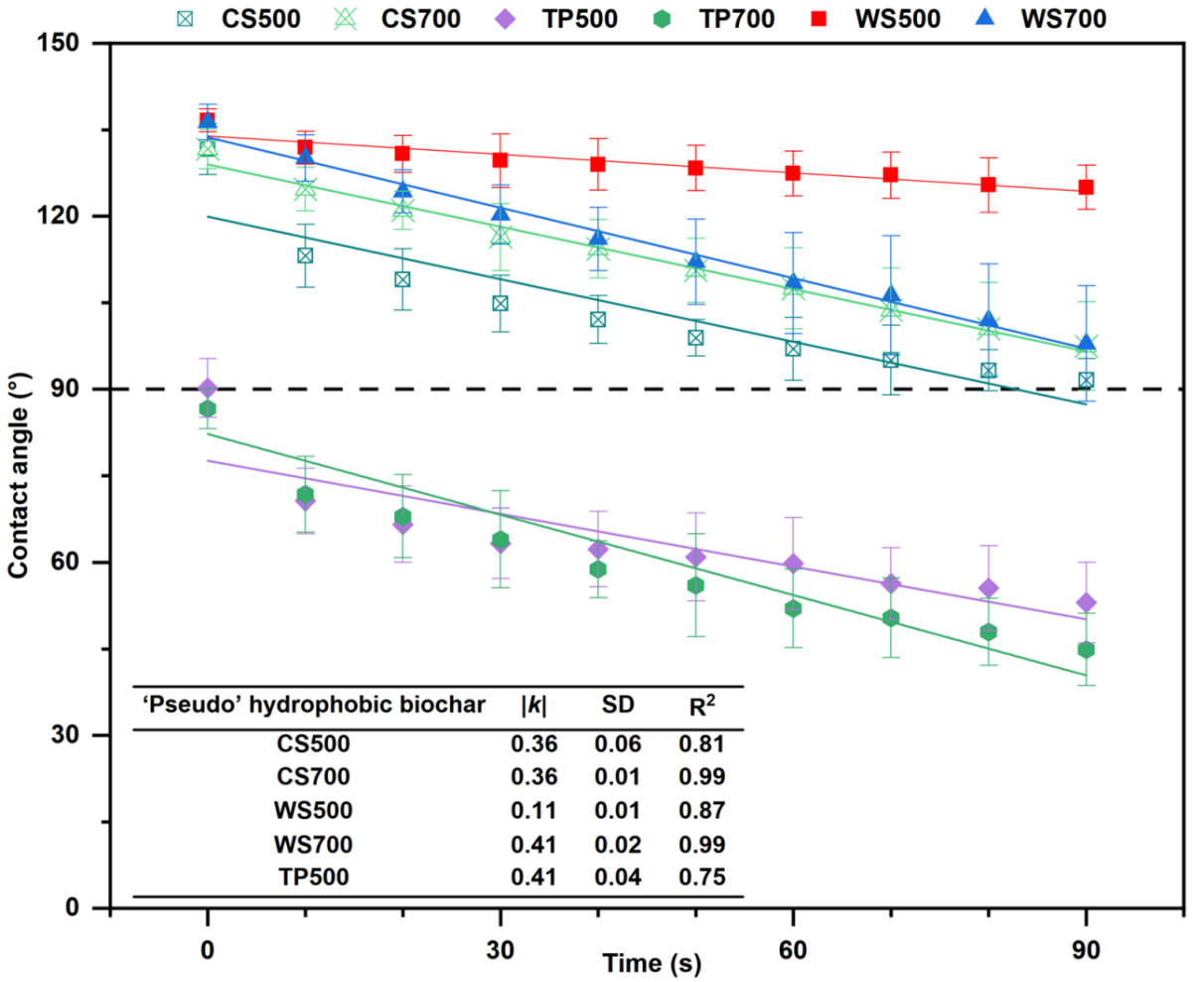 图3:生物炭“假性疏水”现象在接触角测试中的表现