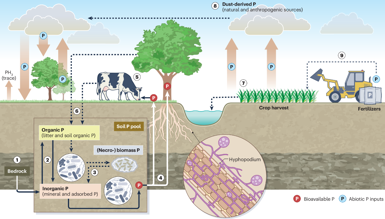 磷是生命体必需但通常限制生态系统生产力的关键大量元素,深刻影响着陆地生态系统的初级生产力和微生物活动。与具有气相过程的碳、氮循环不同,陆地磷循环主要受土壤生物地球化学过程调控,其中微生物在磷的有机、无机及生物分子形态转化中发挥着至关重要的作用。然而,微生物磷循环的全球格局、驱动机制及其与生态系统功能的联系尚缺乏系统梳理。